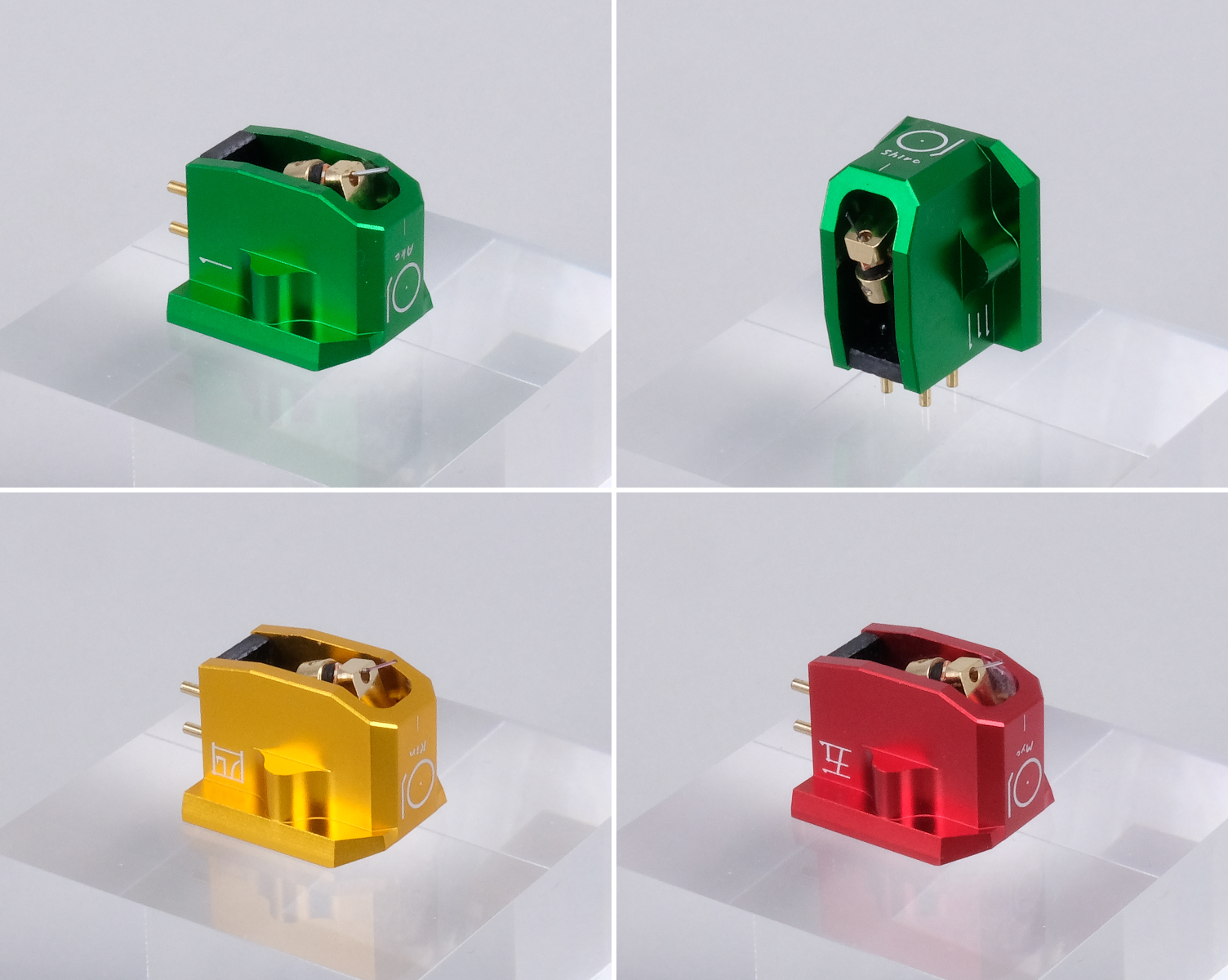 Ogni modello segue la stessa architettura di base — un generatore rigido con supporti per bobine quadrate OCC, puntina in diamante finemente lucidata e cantilever meccanicamente stabile — eppure ciascuno esprime un carattere distintivo attraverso i suoi materiali e la sua geometria.